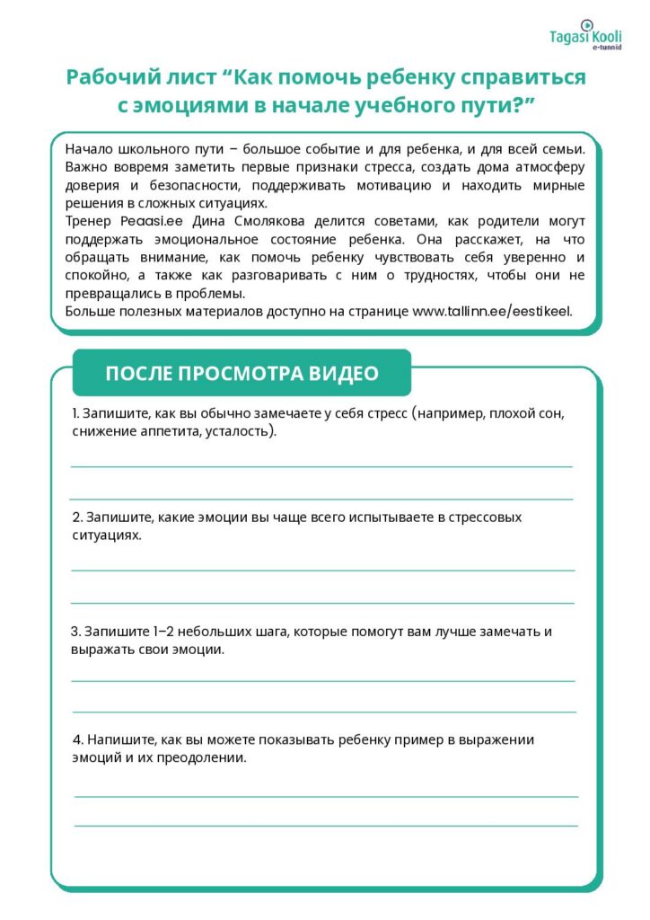 Тренер Peaasi.ee Дина Смолякова делится советами, как родители могут поддержать эмоциональное состояние ребенка. Она расскажет, на что обращать внимание, как помочь ребенку чувствовать себя уверенно и спокойно, а также как разговаривать с ним о трудностях, чтобы они не превращались в проблемы.