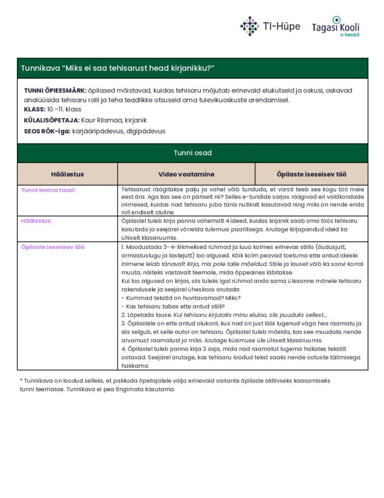 E-tunnis on külas kirjanik Kaur Riismaa, kes jagab mõtteid, milline näeb välja tehisaru ja kirjaniku koostöö.